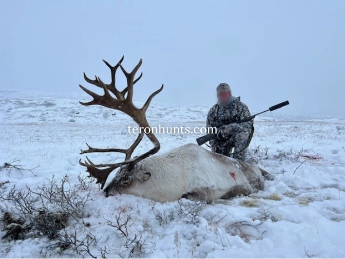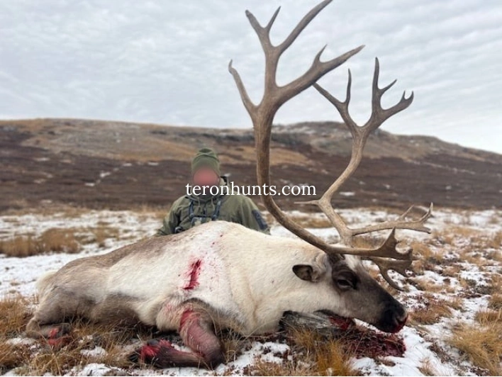 We usually spend the entire day in the field, glassing the tundra for caribou and planning stalks once animals are spotted. The landscape is wide open, with rolling hills and rocky ground, giving good chances to observe herds at a distance. Closing the distance requires patience and effort, but the reward is unforgettable.